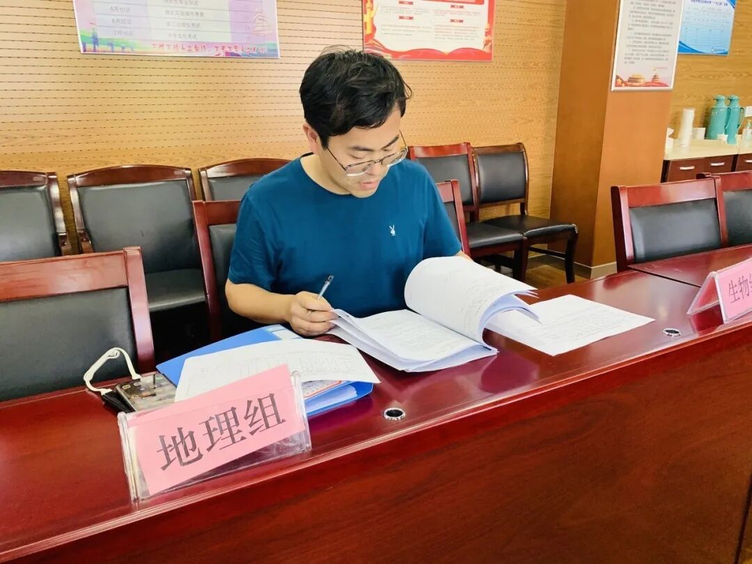 教研组长认真细致的翻阅教师们的教案,从教学目标、教学过程、板书设计、作业的布置等几个方面进行检查,并特别关注了年轻教师的手写教案。