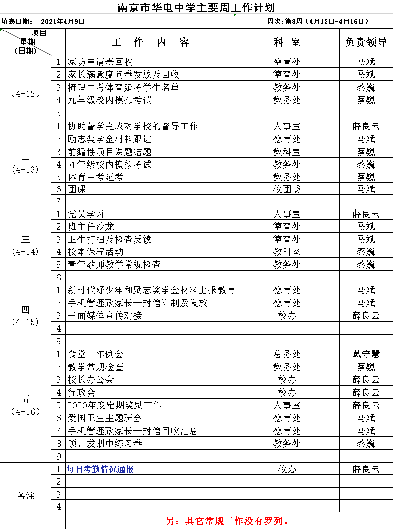 第8周处室工作计划