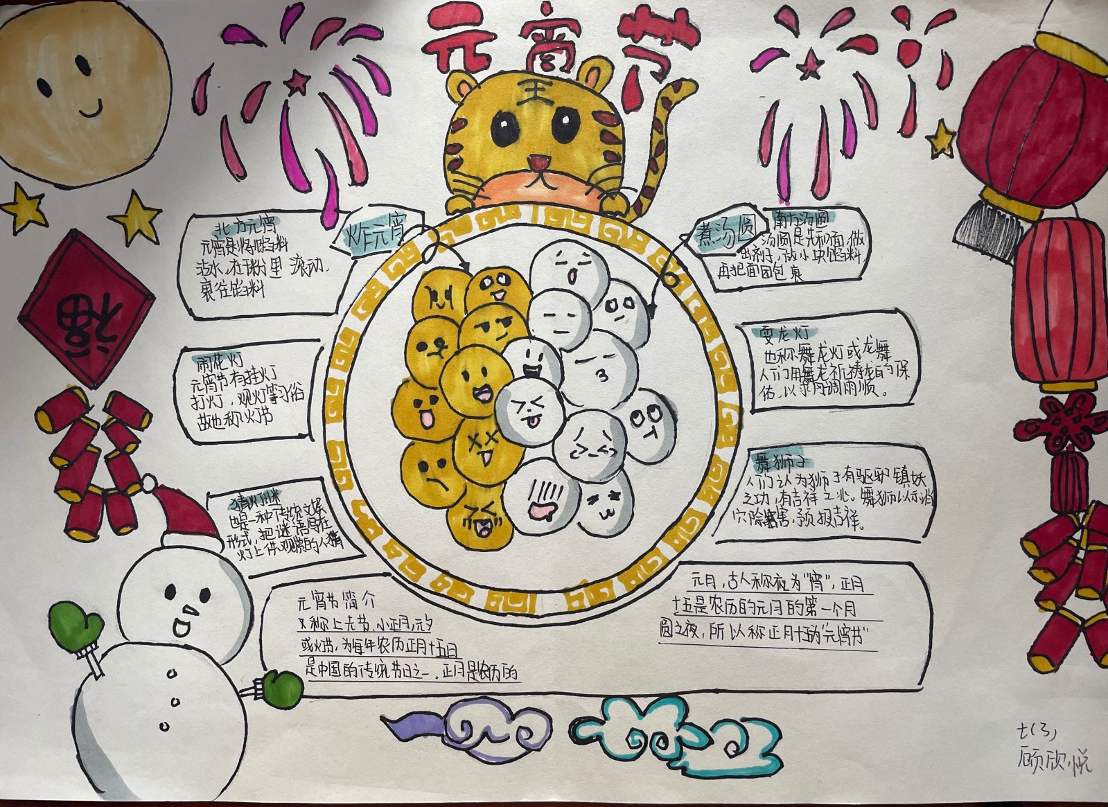 古时候的人们过了元宵节,就要结束春假,开始新一年的劳作。因此,在这一天,人们要尽情地欢乐,进行观灯、猜灯谜、舞龙舞狮、扭秧歌等民俗活动,与家人一起吃象征团圆的元宵,祈愿家人在新的一年中诸事顺遂。同学们回到家后,与家人们一起做汤圆、煮汤圆、品汤圆,带着新春的心愿与期盼,开始忙碌的“春耕”,走向崭新的一学期。