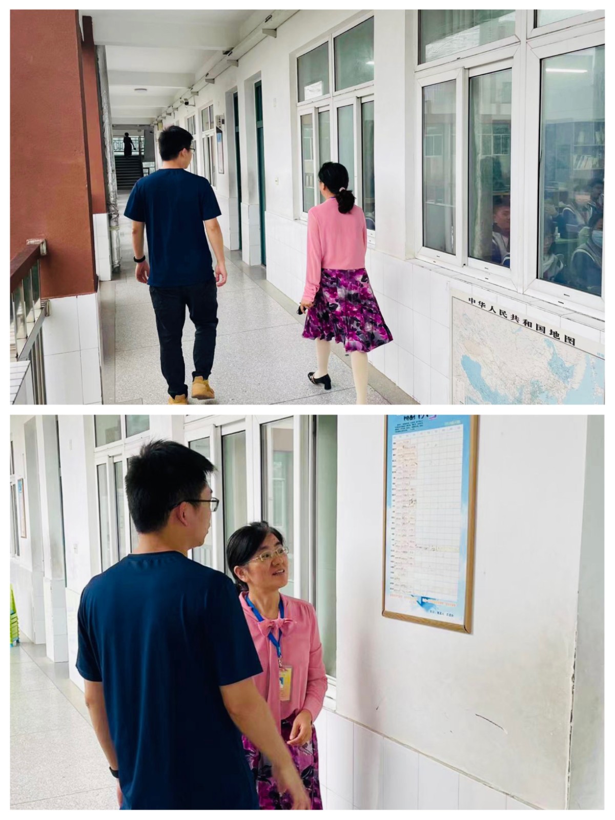 中午吃饭时间,金正芳督学查看了食堂安全情况。下午,在校办副主任杨帆陪同下巡视了班级上课情况,并对班级门口的班级文化布置提出了建议。