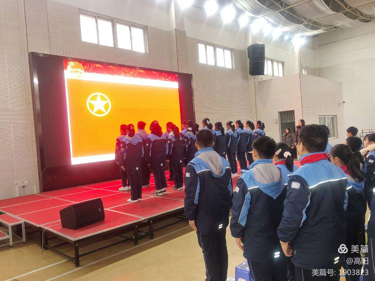 常主任宣布了新一批入团学生名单,大家依次上台,井然有序的战列。全体学生面对团旗,大声高唱团歌《光荣啊,中国共青团!》